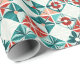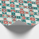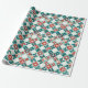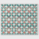 Geometric Xmas Blue Red Stylised Flowers Pattern Wrapping Paper