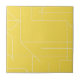 This modern ceramic tile features a striking geometric pattern with white lines against a vibrant yellow background. The clean lines and bold colour combination make it a perfect choice for contemporary spaces.