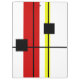 Modern art abstract geometrical design with black, red, yellow lines and black squares on white background