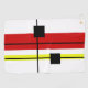 Modern art abstract geometrical design with black, red, yellow lines and black squares on white background