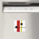 Modern art abstract geometrical design with black, red, yellow lines and black squares on white background