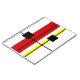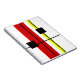 Modern art abstract geometrical design with black, red, yellow lines and black squares on white background