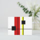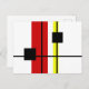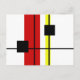 Modern art abstract geometrical design with black, red, yellow lines and black squares on white background