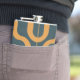 The flask itself is fine. It’s a cheap flask, obviously bought in bulk, however am prepared to overlook that. Given that it is a personalized item, I would have liked to have seen gift boxing instead of the generic packaging. Terrible printing, and/or quality. It’s a cheap, tacky vinyl. It is not cut straight and is also applied in a way that it is overhanging the bottom, causing the glue to catch on items and it will eventually roll and tear, damaging the wrap.