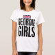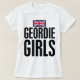 This shirt shows the Union Jack (Union flag) in patriotic red, white and blue, underneath is the words "GEORDIE GIRL" written in black bold lettering.