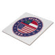 Badge of Georgia with flag of Georgia and flag of USA colours, rounded shape.