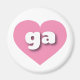 This magnet features a vibrant pink heart containing the bold, white, rounded lower case letters ga, a playful abbreviation for Georgia, the peach state.