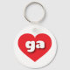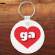 This key chain features a vibrant red heart containing the bold, white, rounded lower case letters ga, a playful abbreviation for Georgia, the peach state.