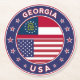 Badge of Georgia with flag of Georgia and flag of USA colours, rounded shape.