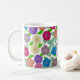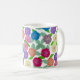 Geranium Flower Coffee Mug with white background. The original artwork for this design was hand drawn and painted using acrylic paint. This mug is part of a collection with five other coloured backgrounds available.
