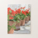 Puzzle features an original photograph of pretty red geraniums in terra cotta pots. Shot at Kew Gardens in Richmond, London, UK.