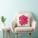 Add a pop of color with this fun Throw pillow. A bright pink gerbera daisy on a bright white pillow is the perfect accent for your living room.