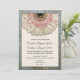 A wedding invitation featuring an image of a pink and off white gerbera daisy at top. Border on all sides is barnwood. Back is barnwood. Personalise the text with details of your occasion.