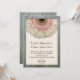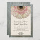 A wedding invitation featuring an image of a pink and off white gerbera daisy at top. Border on all sides is barnwood. Back is barnwood. Personalise the text with details of your occasion.