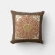 Pillow in a print of a Gerbera daisy, based on a photograph, digitally transformed and hand tinted - shades of camel tan and chocolate brown with warm beige
