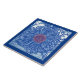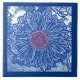Tile in a block print of a Gerbera daisy, based on a photograph, digitally transformed and hand tinted -shades of cobalt and sky blue with soft pink and white