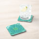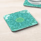 Gerbera Daisy Block Print - shades of aqua Coaster