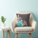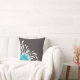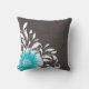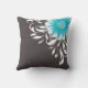 Gerbera Daisy Scroll Burlap 1 teal charcoal Cushion