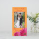 Bright orange and fuchsia pink gerbera daisy flower wedding photo thank you card. This wedding thank you photocard is bright, cheerful, and fun. This pink and orange daisy wedding photo thank you card is perfect for a spring wedding, a summer wedding or a wedding with a fuchsia or hot pink and bright orange themed wedding. Gerber daisy flowers are great favourites of everyone. In this case, the daisy flower is a magenta pink colour and is covered in water droplets as though it has just rained. It's paired with pumpkin orange for a bright and bold look. You can personalise all the wording and the wedding photo on this orange and pink gerber daisy wedding thank you card. In addition to a wedding, this photo thank you card would also work well for a variety of other special occasions. All you need to do is change the text.