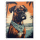 Colourful graphic art design of a german-boxer at a tropical beach with palms. Awesome gift for German-boxer owner and German-boxer lover.