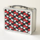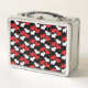 This is a standard metal lunchbox that appears to work just fine. We designed this box ourselves with an uploaded photo and custom text on the front and back. It looks absolutely beautiful except the front of the lunchbox is not centered like it shows in the photo. The print borders don't align with the inset flat part of the box where the preview photo online showed it perfectly centered in there. The back looks nice and centered though.