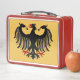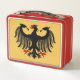 This is a standard metal lunchbox that appears to work just fine. We designed this box ourselves with an uploaded photo and custom text on the front and back. It looks absolutely beautiful except the front of the lunchbox is not centered like it shows in the photo. The print borders don't align with the inset flat part of the box where the preview photo online showed it perfectly centered in there. The back looks nice and centered though.