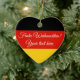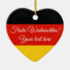 Personalised German flag Frohe Weihnachten! Christmas tree ornament. Custom Merry X-mas Holiday decorations in round or heart shape. Patriotic country Flag of Germany design. Trendy xmas decor for friends, family, kids, co worker, employee, boss, children, wedding couple, newly weds, mum and dad, grandparents, relatives, baby etc. Add your own season's greeting and photo on the back optionally. Elegant script typography template. Gold glittery string included. Create your own keepsake for 1st Christmas together or other occasion.