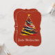 Vibrant colored letters, trees, holly and cancy canes in a cheerful message suitable for a non-religious holiday greeting. I especially liked it on the black background which made the design pop.