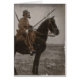 Vintage World War One image of soldier in gas mask sitting on his horse. Photo from public domain and enhanced by hermoines.
