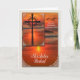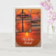 An ocean sunset vista with a Christian cross and a German language message of sympathy.