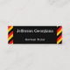 This business card design could be used by a professional such as a German language tutor, German language expert, German instructor, or German teacher. The name, profession and contact details can be personalised. It features a pattern of black, red and yellow stripes, inspired by the colours of the German national flag.