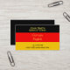 A stylish modern business card suitable for a freelance German language tutor or teacher. This design features a German flag symbol and can be customised with your own personal details. Black, red and yellow colours to represent Germany.