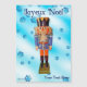 A traditional German wood nutcracker depicting a military officer with a blue and orange uniform. The nutcracker is superimposed on a blue background image with snowflakes. French text reading "Joyeux Noël" (Merry Christmas) also appears. Add your own additional text.