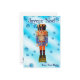 A traditional German wood nutcracker depicting a military officer with a blue and orange uniform. The nutcracker is superimposed on a blue background image with snowflakes. French text reading "Joyeux Noël" (Merry Christmas) also appears. Add your own additional text.