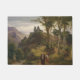 This design features a painting by the German artist Karl Friedrich Lessing (1808–1880). It shows a beautiful and romantic landscape in the countryside of Germany. The landscape is forested with trees, and there is a monastery that is built like a fairytale-style castle on a hill. There is a monk and his religious attendant in the foreground of the image. The mountains in the background are majestic. A distant river can also be seen meandering through the landscape. There is bright sunlight streaming through the dark clouds in the sky. The original artwork was painted in 1834.