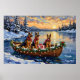 Bring noble, intelligent charm to your holiday season with this majestic German Shepherd Christmas design! This magical scene features three proud, devoted German Shepherds (GSDs) sitting alertly in a cozy wooden boat, gently floating on a serene snowy lake at sunset. The boat is beautifully adorned with glowing Christmas string lights and fragrant pine garlands, while the dogs wear festive scarves. They are surrounded by colorful wrapped presents and cheerful holly branches. Soft snowflakes gently fall, and the shimmering reflection of the lights on the water creates a truly magical winter holiday atmosphere. This design is a perfect Christmas gift for any German Shepherd owner, dog lover, or admirer of festive and impressive working dog art, capturing the serene joy of the season.