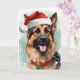 Colourful and joyful Christmas design with a German Shepherd wearing a Santa hat.