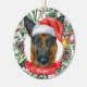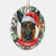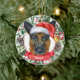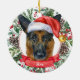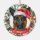 This sophisticated ceramic Christmas ornament features a watercolor of a beautiful adult German Shepherd in a Santa hat, surrounded by holiday greenery, pinecones and berries, with a red banner with your pet's name (or change to Merry Christmas). You can fully personalise this design by changing the greeting and year on the back in an elegant font. This is a stylish, yet inexpensive, custom Christmas ornament, and it's perfect for German Shepherd lovers, dog lovers, pet lovers, and police dog lovers.