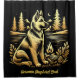 This shower curtain features a golden German Shepherd sitting by a campfire in a forest setting. Its perfect for dog lovers and makes a great gift for any dad.