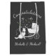 These two personalised and stylish glossy gift bags were simply ideal to carry wedding gifts wrapped in the matching gift wrapping paper. The customised text printed on the gift bags was precisely as ordered and while the photo does not quite do the gift bags justice, rest assured they look fabulous. The gift bags were securely packaged for safe transit arriving undamaged and it was a speedy turnaround from ordering to delivery. Thank you Zazzle for another 5-star transaction in every way!