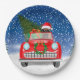 German Shepherd Dog Driving Car In Snow Christmas Paper Plate