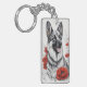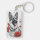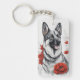 Capture the essence of strength and loyalty with this keychain, featuring a regal German Shepherd dog among red poppies.