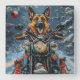 German Shepherd Dog Riding Motorcycle Christmas Square Wall Clock