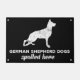 German Shepherd Dogs Spoiled Here, adorable GSD silhouette image and text in distressed chalk style on a black background.