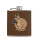 The flask itself is fine. It’s a cheap flask, obviously bought in bulk, however am prepared to overlook that. Given that it is a personalized item, I would have liked to have seen gift boxing instead of the generic packaging. Terrible printing, and/or quality. It’s a cheap, tacky vinyl. It is not cut straight and is also applied in a way that it is overhanging the bottom, causing the glue to catch on items and it will eventually roll and tear, damaging the wrap.