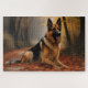 German Shepherd in Autumn Leaves Fall Inspire Jigsaw Puzzle