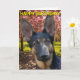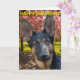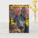 Cute German Shepherd posing in a park photo greetings card. Front text reads "Happy Birthday", inside text reads "Hope you have a great day!" Text can be customised.