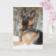 German Shepherd dog posing in the snow wearing a camoflaug coloured bandana.