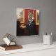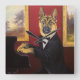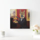 This design features German Shepherd elegantly dressed in a black frock coat, white shirt, near the piano, against a red wall with paintings in gold frames.