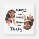 This magnet features an adorable German Shepherd puppy. Text reads: "Dishes are Dirty". Turn this magnet up-side-down and the same picture is featured with this text: "Dishes are Clean". Great for that animal lover in your life! Looking to adopt a new best friend? Please visit petfinder.com to save the life of a shelter/rescue animal near you.